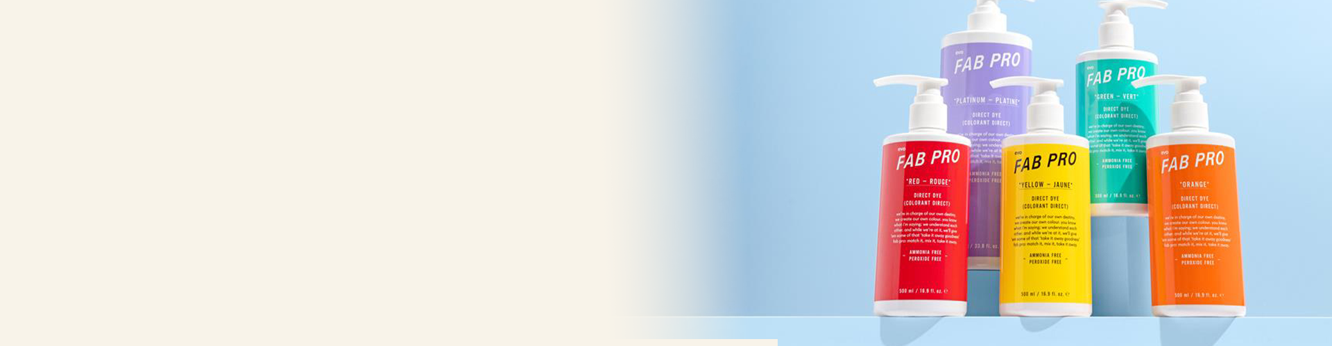 Offering customised colour maintenance solutions, Evo Fab Pro is a unique customised colour maintenance system that complements any salon hair colouring service. With Fab Pro, colourists have the power to perfectly match and maintain any hair colour in-between salon visits with a customised colour conditioner that clients can take home.