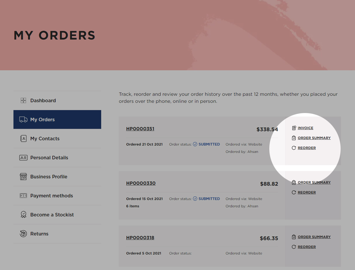 - Log into your account, select ‘My Orders’ via your dashboard