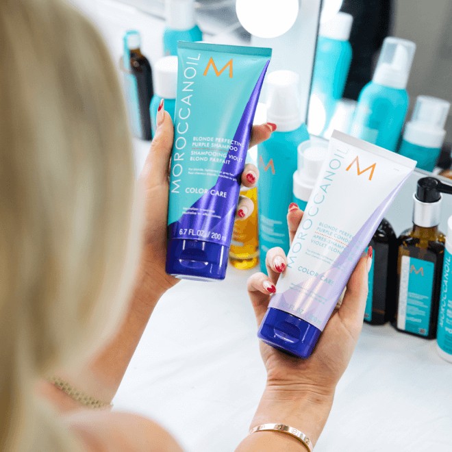 HOW TO USE MOROCCANOIL PERFECTING PURPLE SHAMPOO & CONDITIONER
