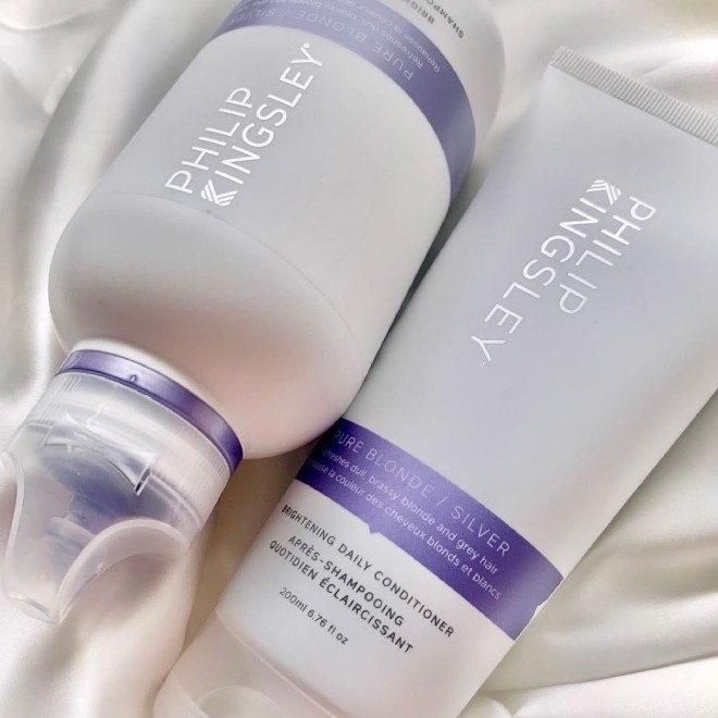 Steps: Wet hair and apply Philip Kingsley Pure Blonde Silver Shampoo to hair. Knead into the hair and scalp, leaving in up to 3 minutes for a more intense effect. Rinse out and follow up with Philip Kingsley Pure Blonde Silver Conditioner, which again, can be left in for up to 3 minutes to intensify the effects. Rinse well and finish with a Philip Kingsley Scalp Toner.