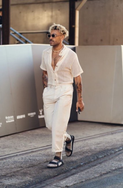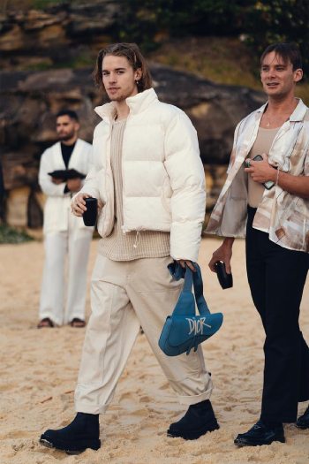 The most prevalent trend spotted among men in the crowd was the bleached blonde hair. We haven’t seen blonde embraced at this level since the slim shady era, except this time it’s more versatile – from full scalp bleaches to blonde tips. Even the low-maintenance blokes can get in on this trend, the grown out blonde look (which can also be achieved with a tip cap application) gives an edge to the usually polished blonde we’re used to seeing.