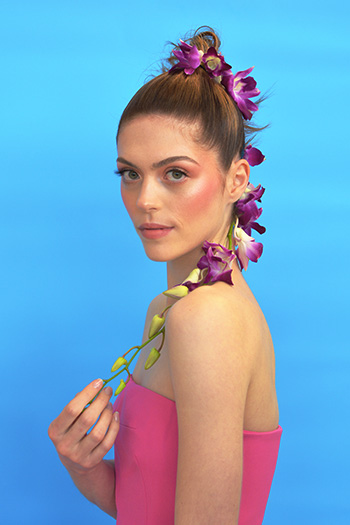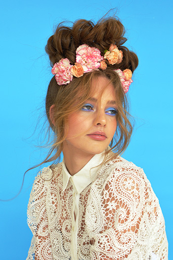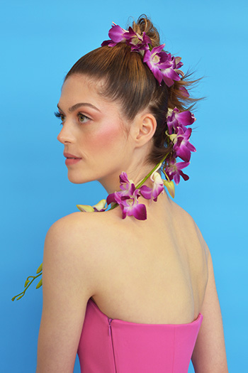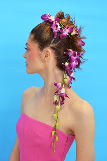 - Secure flowers to hair with bobby pins and finish with Color Wow Extra Mist-ical Shine Spray.