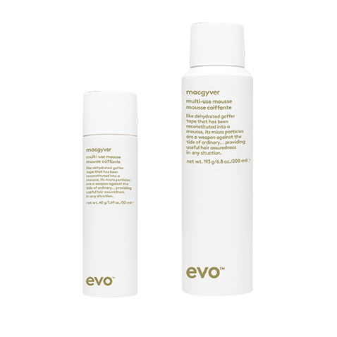 Evo Macgyver your way out of hair-threatening situations with evo’s multi-use mousse. Whatever your style, with Evo Macgyver, you’ll be prepared for anything.