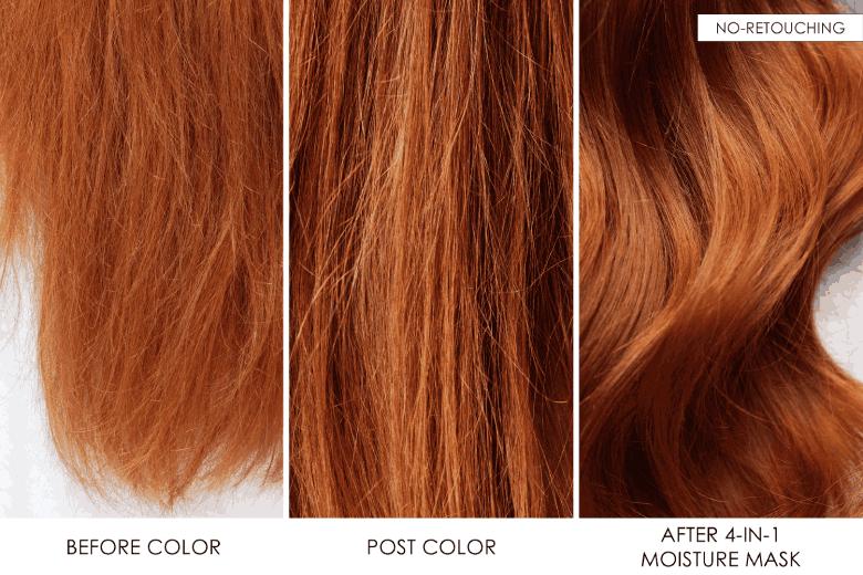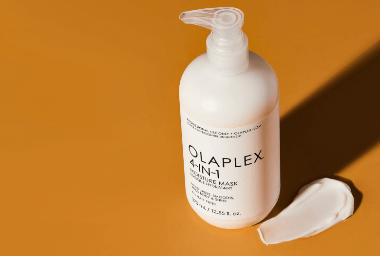 - Apply 1-3 pumps of OLAPLEX 4-IN-1 Moisture Mask to clean, damp hair;