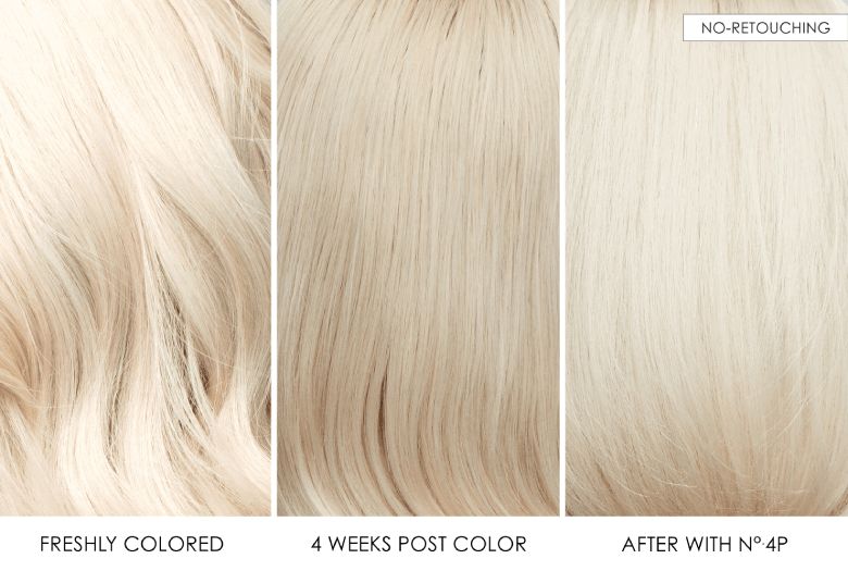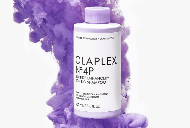 - Wet hair thoroughly and cleanse with OLAPLEX No.4P Blonde Enhancer Toning Shampoo